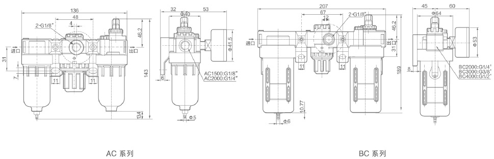| 調(diào)壓閥 | AR1500 | AR2000 | BR2000 | BR3000 | BR4000 | |