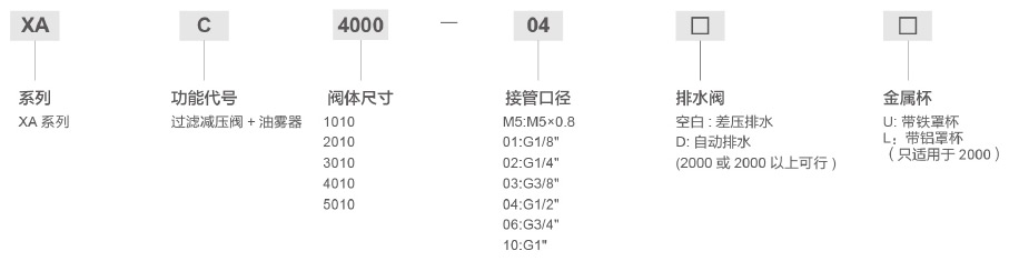 | 油霧器 | XAL1000-M5 | XAL2000-01 | XAL2000-02 | XAL3000-02 | XAL3000-03 | XAL4000-03 | XAL4000-04 | XAL4000-06 | XAL5000-06 | XAL5000-10 | |