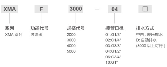 | 接管口徑(G) | 1/8" | 1/4" | 1/4" | 3/8" | 3/8" | 1/2" | 3/4" | 3/4" | 1" |