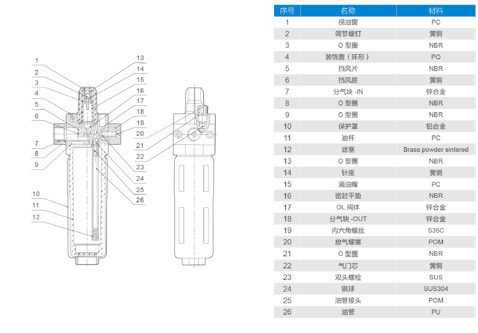 | 物資信息 | 殼體:壓鑄鋅;油杯和視油器: PC; 金屬保護(hù)罩:鋁合金;密封:丁睛橡膠 | |||||||